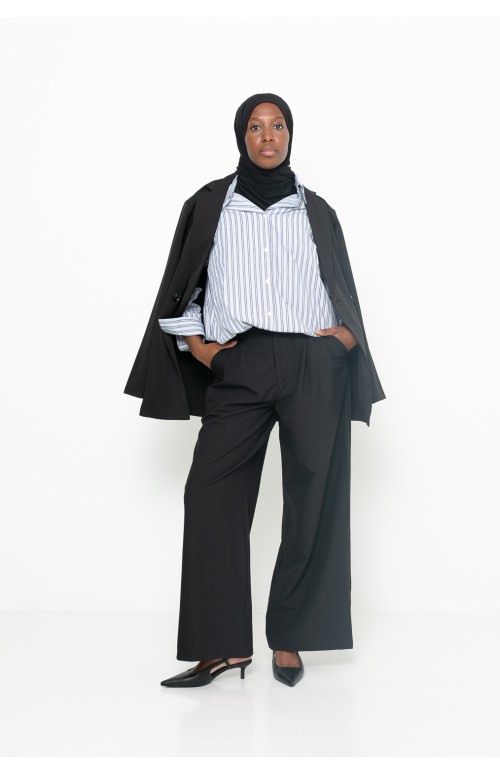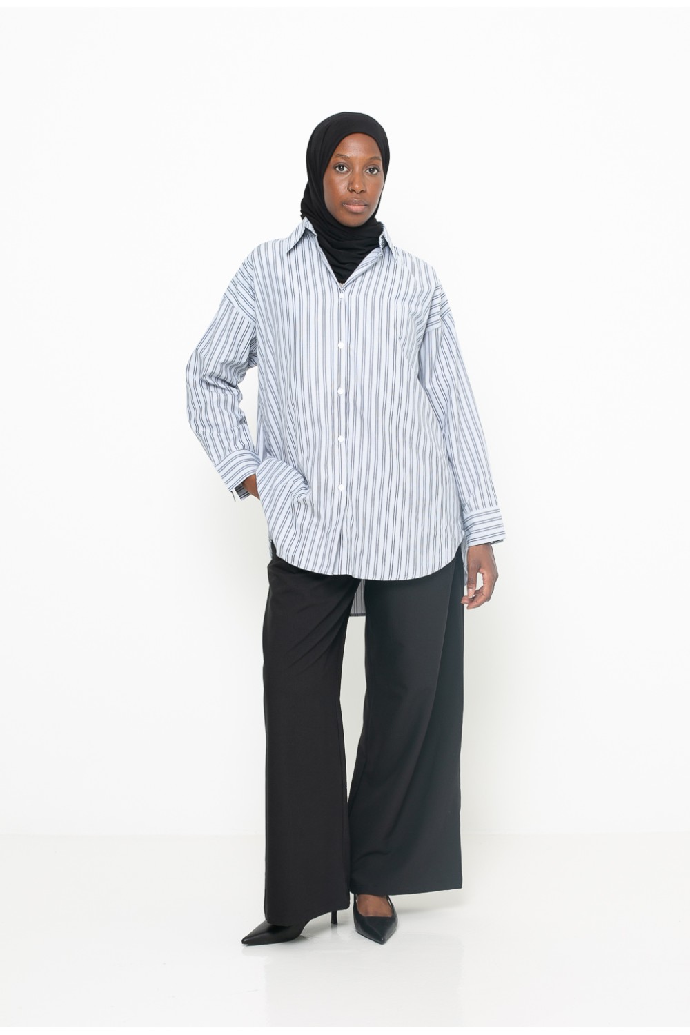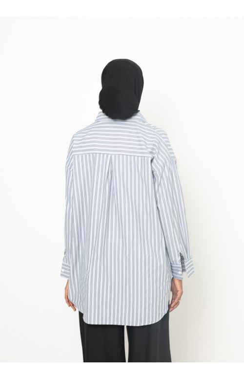 Discover our oversized striped shirt , an elegant and timeless piece that combines comfort and style. Made from a quality flowing fabric , it offers a light and refined drape. Its trendy oversized cut brings a modern and relaxed look, while remaining perfectly suited to a classy and dressed-up look.