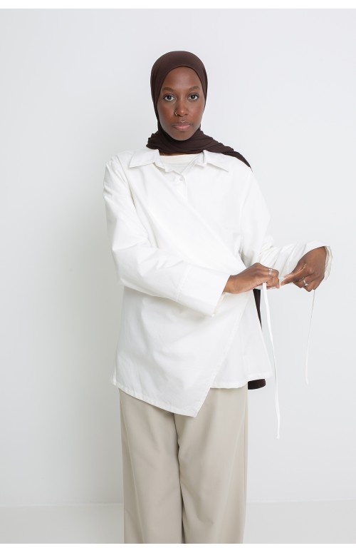 Discover this Chic & Modesty tie-up shirt , a piece designed to combine elegance, modernity and comfort.