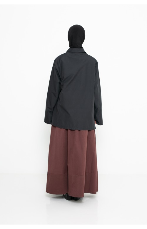 An elegant, asymmetrical tie-front shirt featuring refined pleats and tonal buttons. Made from durable, premium fabric, it pairs perfectly with a skirt and hijab for a refined look.