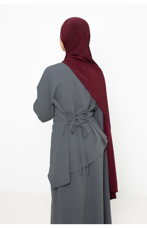 We paired it with our premium burgundy jersey hi-jab , which highlights the fluidity and elegance of the ensemble. We also paired it with elegant burgundy shoes for an autumnal style.