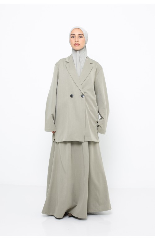 Discover a premium tailored suit , designed in a flowing, high-quality fabric, carefully selected to offer elegance, comfort and durability. This two-piece set consists of a sophisticated blazer jacket and a full , flowing skirt, creating a chic, modern and timeless silhouette.
