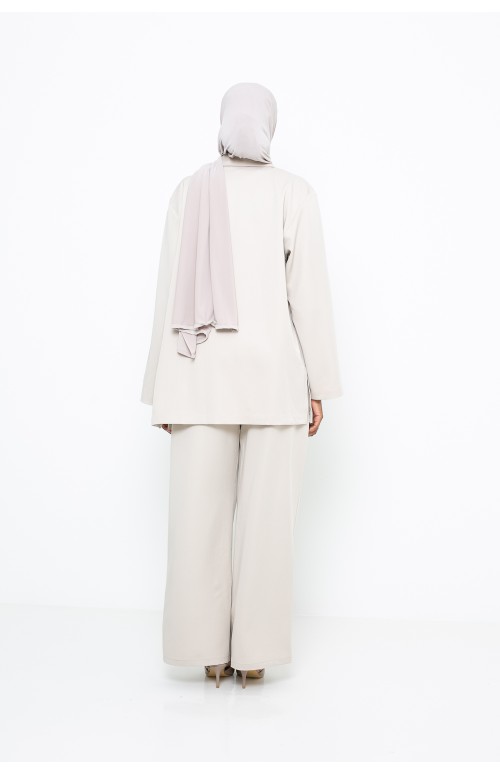 Discover a premium tailored suit , designed in a flowing, high-quality fabric, carefully selected to offer elegance, comfort and durability. This two-piece set consists of a sophisticated blazer jacket and wide, flowing trousers , creating a chic, modern and timeless silhouette.