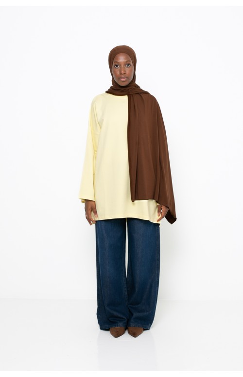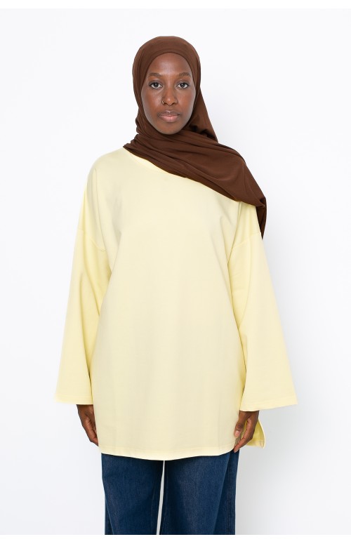 The big trend and essential in the Muslim woman's wardrobe is the loose and simple top. For mid-season, it's the best! Long and wide. A must-have piece if you want to dress casually. We offer you this magnificent top with a soft and very pleasant cotton fabric. Loose cut, therefore comfortable and covering, you don't see any shape. Round neck. Discover our range of tops on your Chic and Modesty website . Loose and wide sleeves.