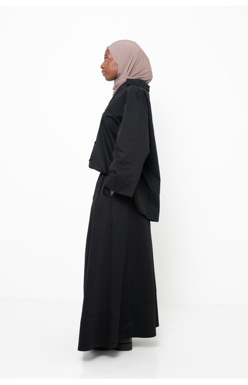 For a harmonious style, we have combined it with the black cotton shirt, the taupe premium jersey hijab and a pair of black shoes.