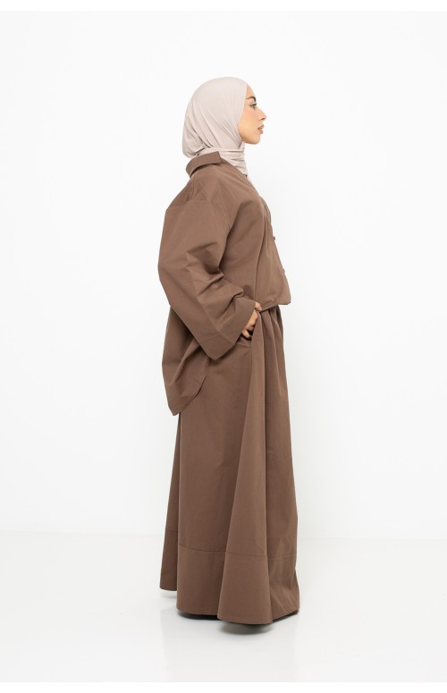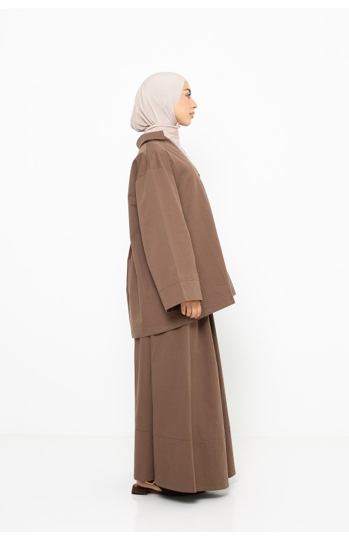 For a harmonious style, we have combined it with the chocolate cotton shirt, the taupe beige premium jersey hijab and a pair of black shoes.