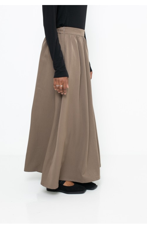 This long skirt has been carefully crafted to combine style and comfort. Its elasticated waistband, only at the back, allows for a perfect fit while maintaining a chic and structured look at the front. Delicate flat pleats on the front add originality and modernity, creating an elegant and sophisticated silhouette.