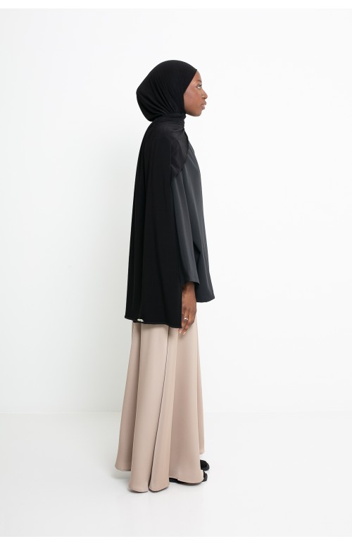 We chose to wear it with the black tie-up jacket and the black premium jersey hijab .
