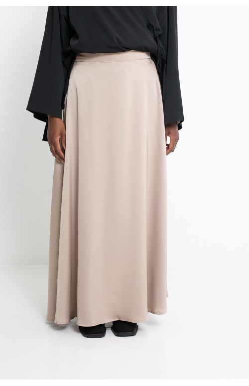 Add a touch of elegance to your wardrobe with this long, flared satin skirt.