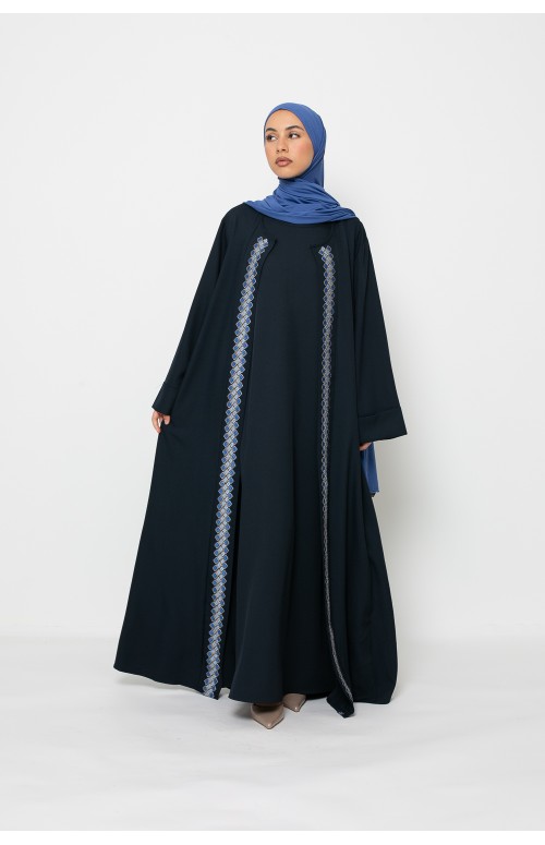 Made from a flowing, tailored-style fabric , this opaque underdress hugs your curves lightly, without marking your silhouette. Its straight cut ensures a flawless fit, preventing any transparency under your outfits. Ideal for complementing our iconic designs, it pairs perfectly with our classic blue embroidered kimono , creating a sober and distinguished look.