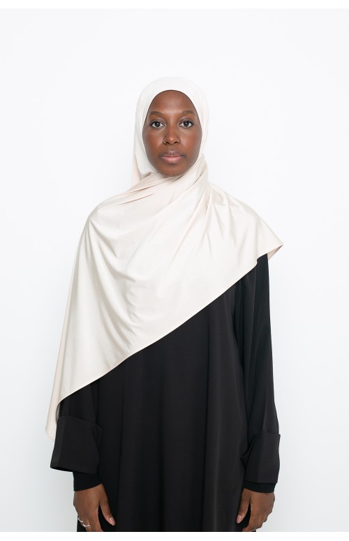 The flowing satin jersey hijab, soft, slightly shiny and elegant, is the ideal choice to enhance your outfits for occasions, weddings and parties, while maintaining a refined simplicity.
