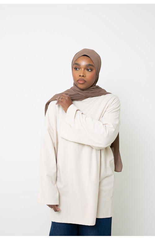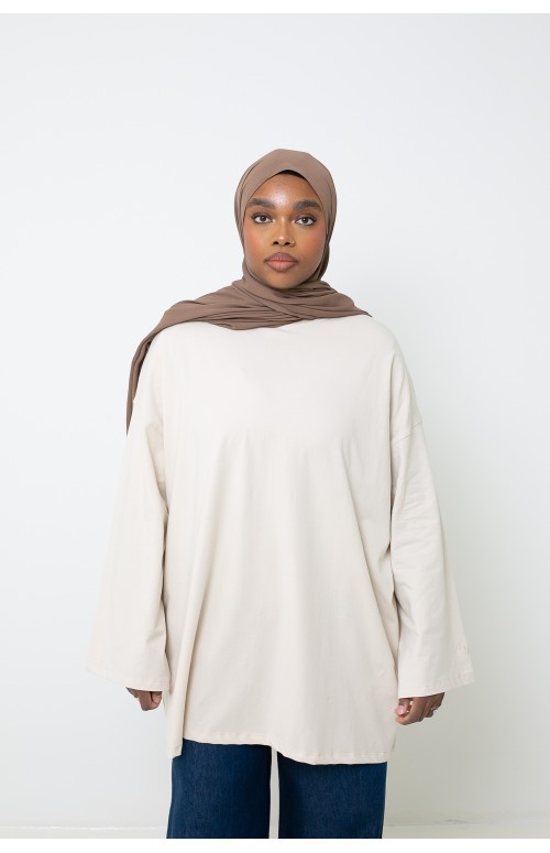 The big trend of the moment is oversize , and that's a good thing because it's what modest women are looking for. The CM brand offers you this magnificent oversized t- shirt for women. A must-have for the Muslim woman's wardrobe for her daily life. Oversized cut, long wide sleeves, high round neck, and Salam embroidery on the left sleeve. The high-quality fabric is made in Turkey. The CM brand has chosen the best fabrics for you in terms of comfort and durability.