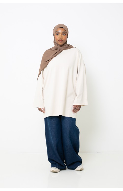 The big trend of the moment is oversize and that's good because that's what modest women are looking for. The Salam brand offers you this magnificent oversized t-shirt for women. A must-have in the Muslim woman's wardrobe for her daily life. Oversize cut, wide long sleeves, high round neck, pockets, Salam embroidery on the left sleeve. The high quality fabric is made in Turkey. The Salam brand has chosen for you the best fabrics in terms of comfort and resistance. Cotton is known for its absorbent properties which is ideal for your sporting activities but also during the hot seasons. You can wear this maxi t-shirt all year round.