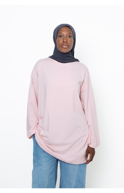 The big trend of the moment is oversize , and that's a good thing because it's what modest women are looking for. The CM brand offers you this magnificent oversized t-shirt for women. A must-have in the Muslim woman's wardrobe for her daily life. Oversized cut, long wide sleeves, high round neck, and Salam embroidery on the left sleeve. The high-quality fabric is made in Turkey. The Salam brand has chosen the best fabrics for you in terms of comfort and durability. Cotton is known for its absorbent properties, which is ideal for your sports activities but also during warmer seasons. You can wear this maxi t-shirt all year round.