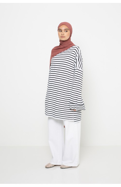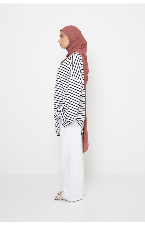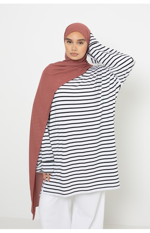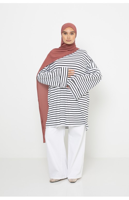 Designed in a fluid viscose fabric , this revisited iconic model combines comfort, modernity and quality. Its discreet and comfortable boat neck fits perfectly under a hijab and brings a touch of refinement to the outfit.