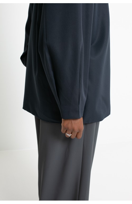 The two-tone brown buttons , inspired by the traditional trench coat, subtly stand out and add a refined touch to the garment. The balloon sleeves , worked with precise pleats, give volume and a sophisticated feminine look. In addition, the jacket has practical side pockets , discreetly integrated to maintain pure and elegant lines.