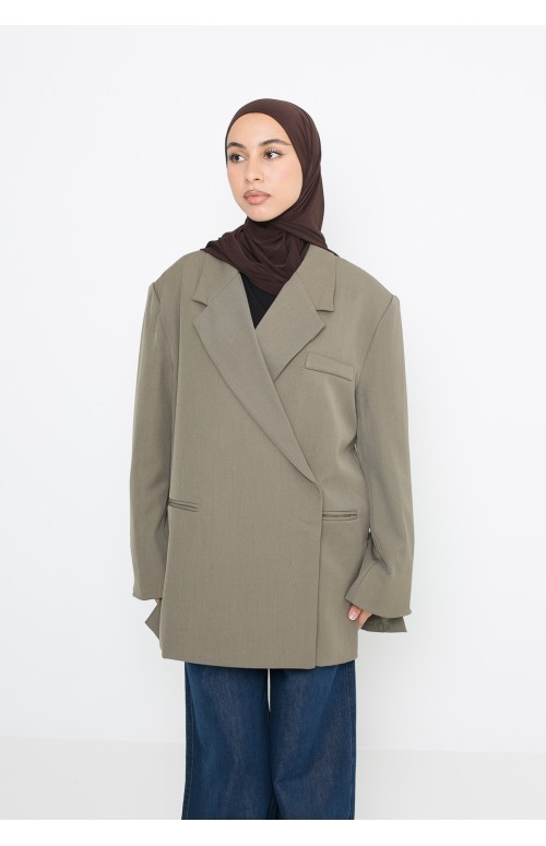 Un blazer único y elegante, diseñado para quienes buscan destacar. Un corte moderno con cierre cruzado que define la silueta. Detalles sofisticados en puños y laterales, con una bonita abertura, ofrecen una comodidad excepcional. Combínalo con pantalones holgados, jeans, un vestido o una falda para un look moderno. Totalmente forrado en tela premium.