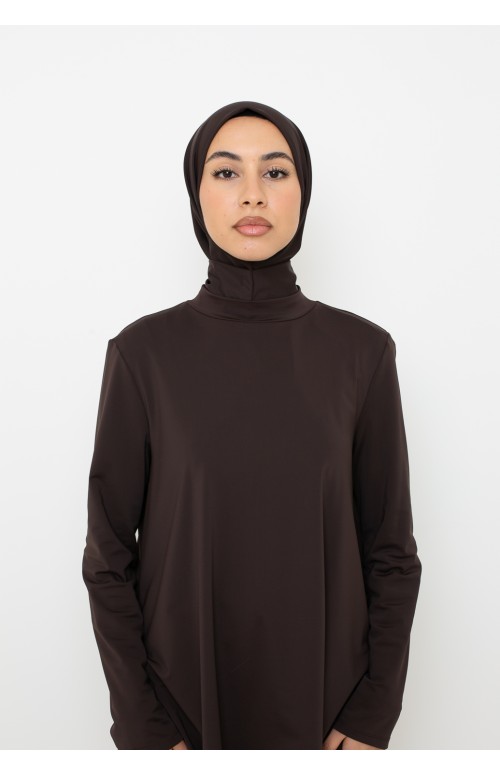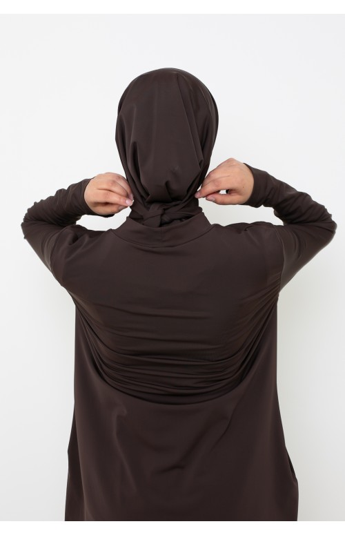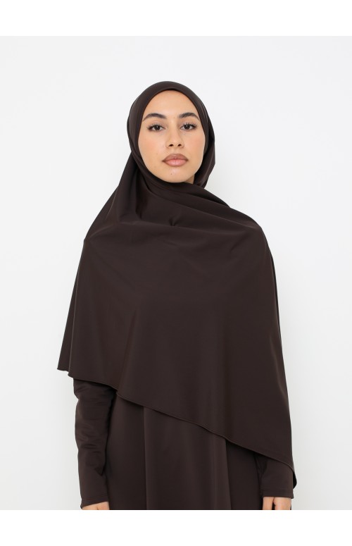 - Un hiyab deportivo con lazo: idéntico al que vendemos habitualmente, pero hecho con tela burkini. ¡Ideal para quienes disfrutan del buceo, ya que no se mueve!