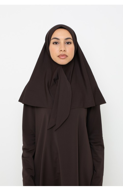 - Un hijab listo para atar: es el mismo modelo que vendemos habitualmente pero en tejido burkini, por lo que la sujeción es óptima.