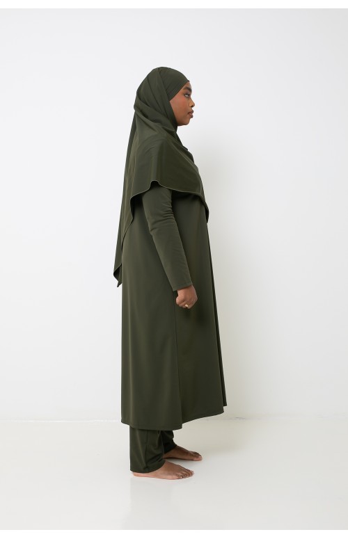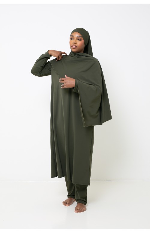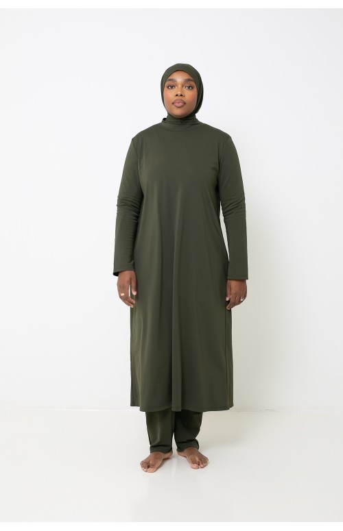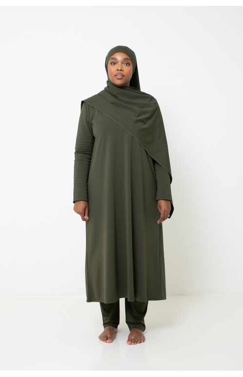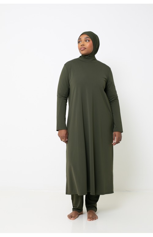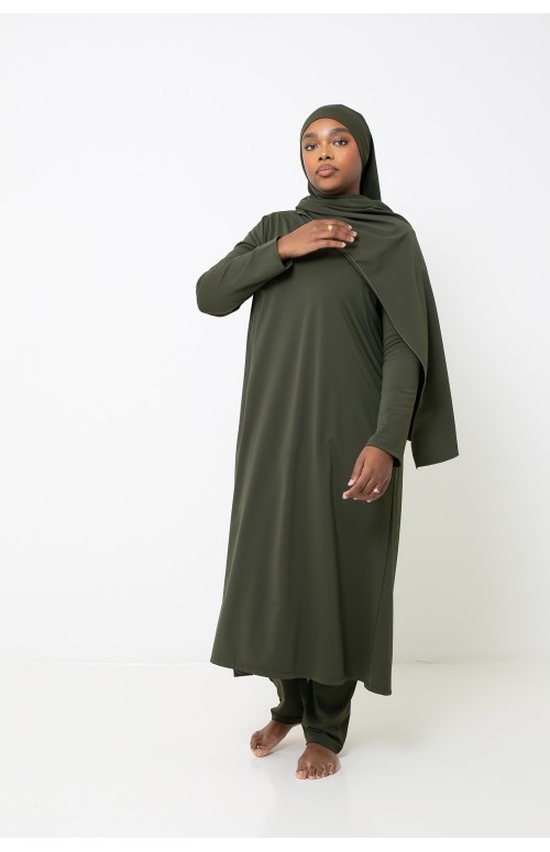 Desde hace varios años este modelo deburkini largo moderno Es un verdadero éxito en Chic and Modesty. Compuesto por un vestido túnica, unleggings de nataciónY un hiyab. Llévalo con o sin cinturón. Este estilo es perfecto para las chicas que disfrutan de usar vestidos largos y túnicas a diario. Encontrarás cientos de reseñas de nuestras clientas a las que les encantó este estilo.
