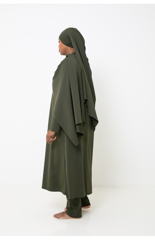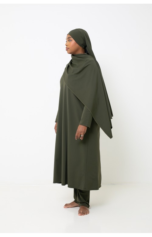 Nuevo modelo de hiyab burkini largo 2024. ¡Tejido aún más fluido y de secado rápido! Opaco, ligero y cómodo de llevar. Este modelo consta de 5 piezas + cinturón: