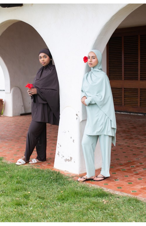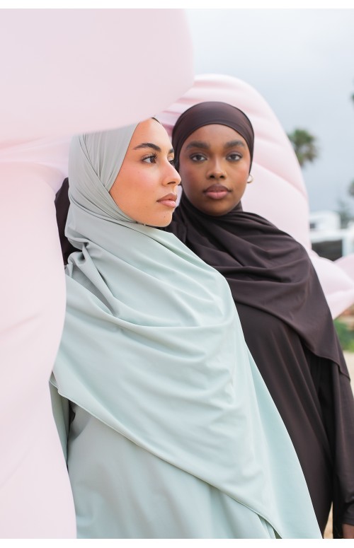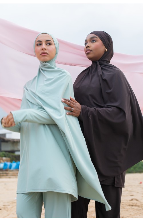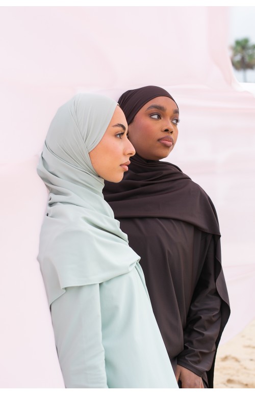 Hiyab anudado: simplemente átalo en la espalda. Perfecto para combinar con tu burkini.