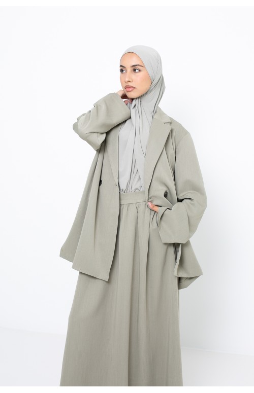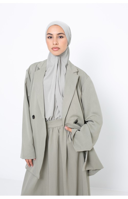 Lo usamos con el hijab de jersey premium de color verde almendra y un par de zapatos marrones.