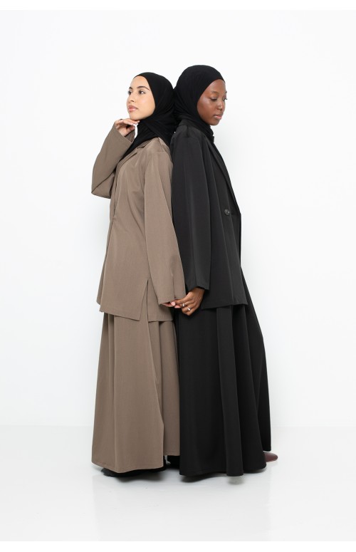 Descubra un traje a medida premium , confeccionado con un tejido fluido de alta calidad, cuidadosamente seleccionado por su elegancia, comodidad y durabilidad. Este conjunto de dos piezas incluye una sofisticada chaqueta blazer y una falda amplia y fluida , creando una silueta elegante, moderna y atemporal.