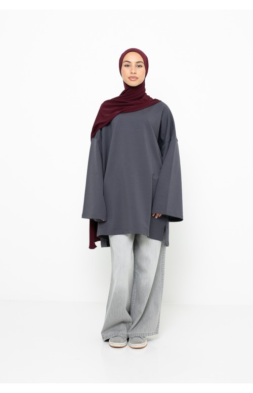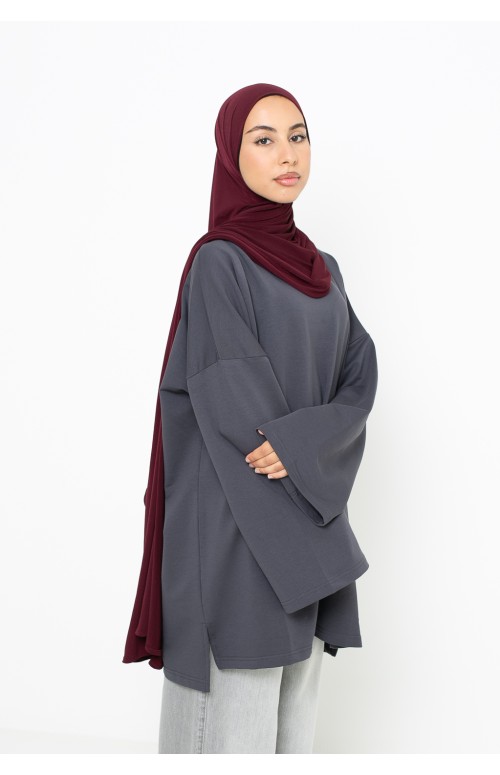 La gran tendencia y un imprescindible en el armario de la mujer musulmana son los tops holgados y sencillos. ¡Para entretiempo, son ideales! Largos y anchos. Una prenda imprescindible si buscas un estilo casual. Te ofrecemos este magnífico top con un tejido de algodón suave y muy agradable. De corte holgado, cómodo y envolvente, no se nota la forma. Cuello redondo. Descubre nuestra gama de tops en la web de Chic and Modesty. Mangas sueltas y anchas.