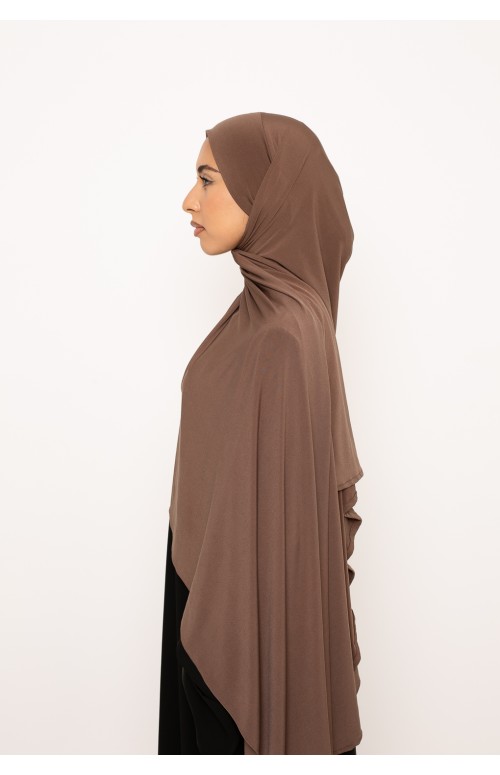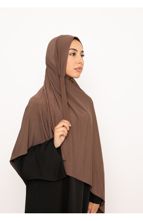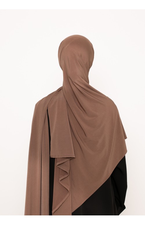 Hiyab listo para atar en jersey premium marrón topo