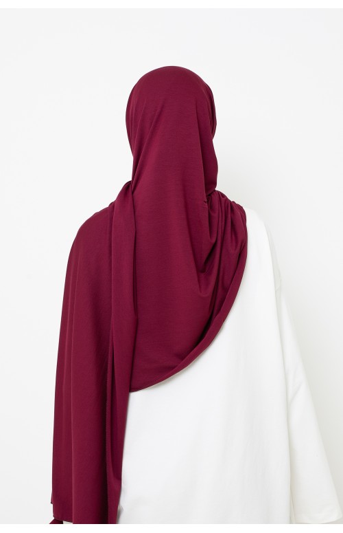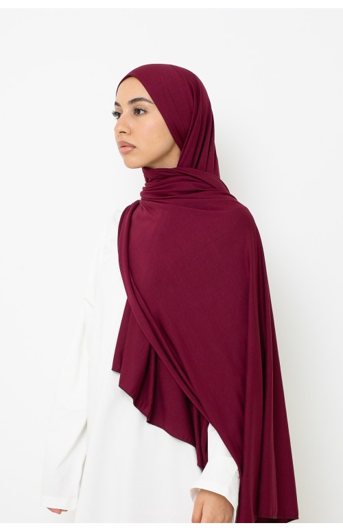 Hiyab de jersey suave de lujo listo para anudar en color burdeos