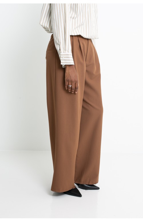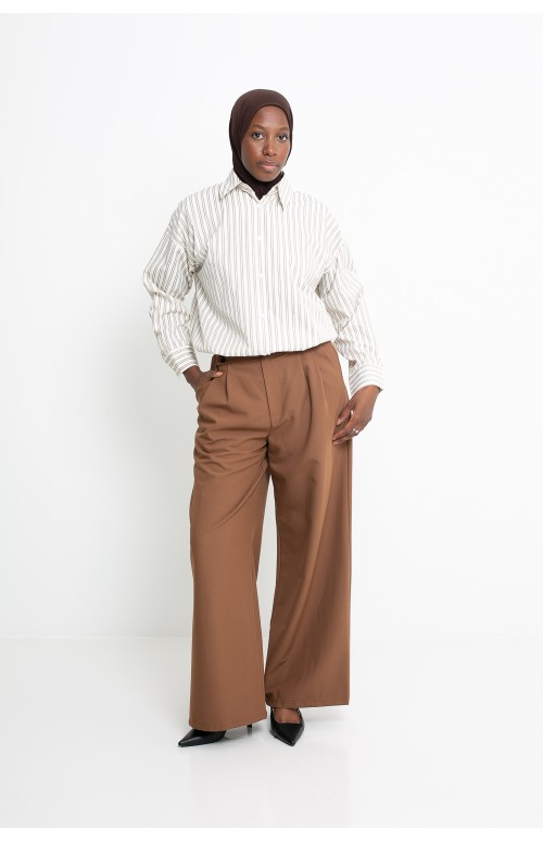 Descubre nuestros pantalones de tiro alto y pierna ancha , una prenda imprescindible que combina elegancia y comodidad . Diseñados en un tejido fluido de entretiempo , se adaptan naturalmente a tus movimientos para un ajuste impecable.