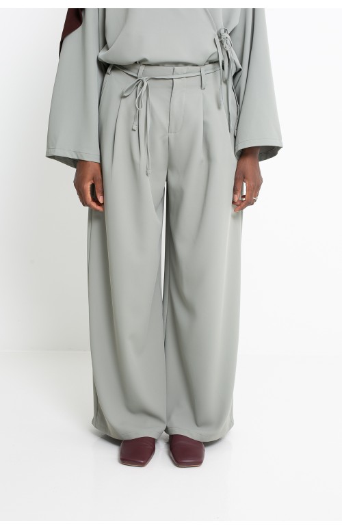 Elegantes pantalones de sastre con corte holgado, pinzas refinadas y cinturilla híbrida (delantera lisa, trasera elástica). Cómodos y elegantes, combinan a la perfección con una camisa, un blazer o una chaqueta con lazo.