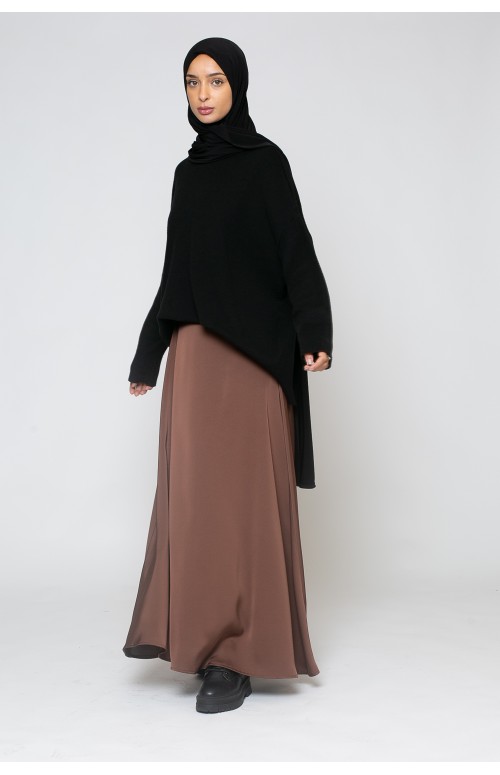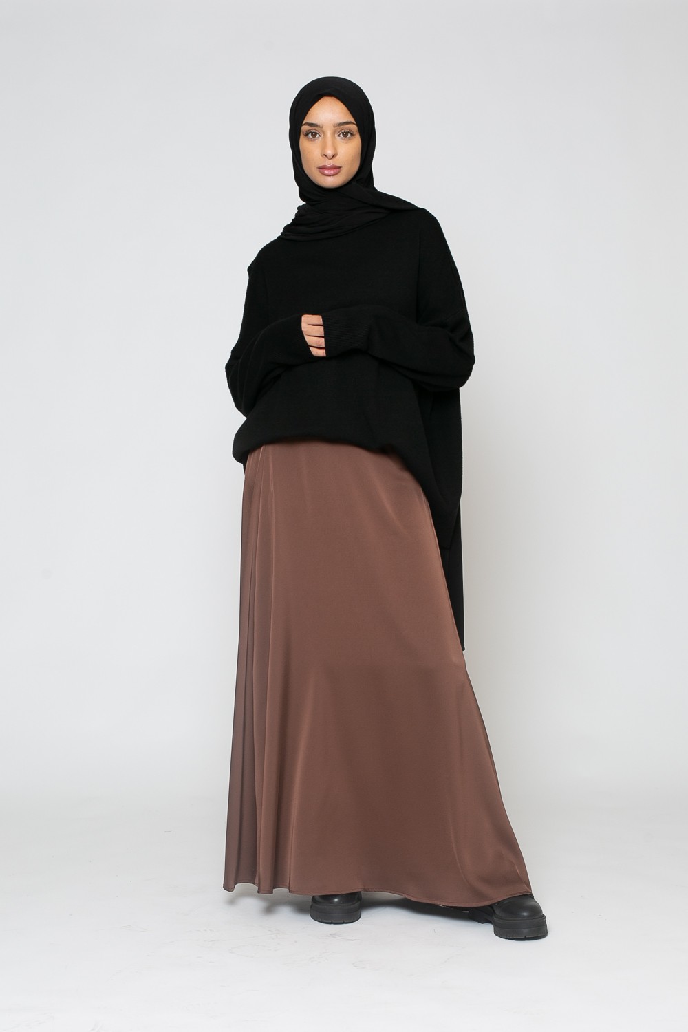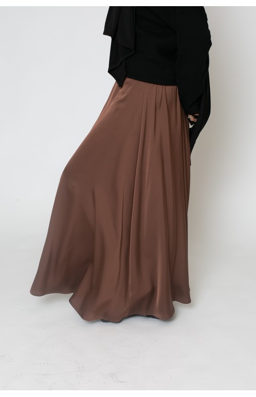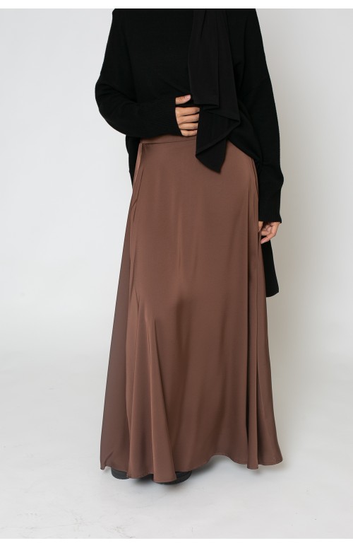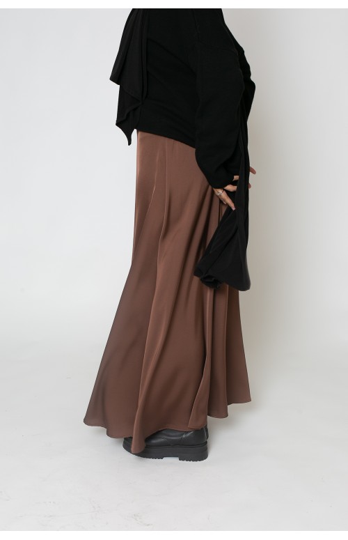 Aporta un toque de elegancia a tu guardarropa con esta falda larga y acampanada de satén.
