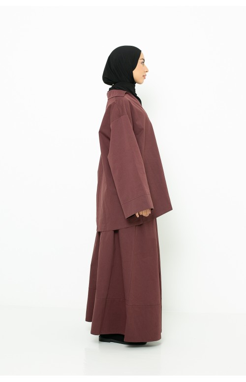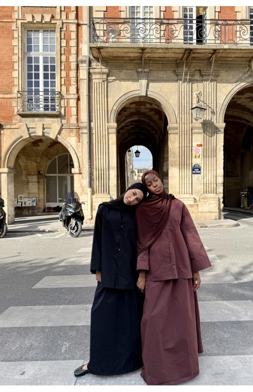 Para un estilo armonioso, lo hemos combinado con la camisa de algodón granate, el hijab de jersey premium negro y un par de zapatos negros.