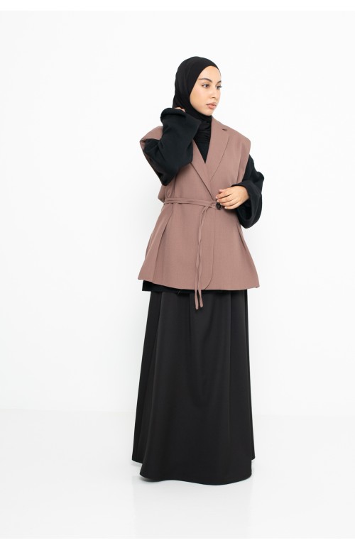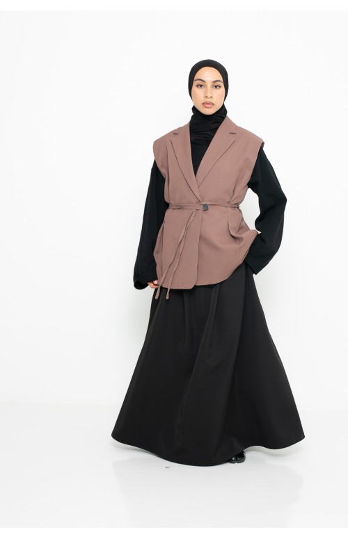 Nous l'avons porté avec la jupe Paris city, le gilet minimaliste noir, le hijab jersey premium noir et une paire de chaussure noir.