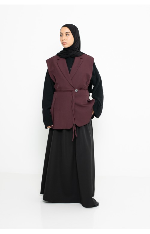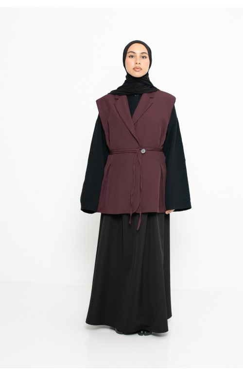 Blazer sans manches en tissu premium, entièrement doublé. Sa coupe structurée avec plis délicats à la taille et ceinture intégrée ajustable apporte une allure chic et moderne, idéal sur robe, jupe ou pantalon large. Epaulette.