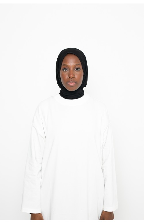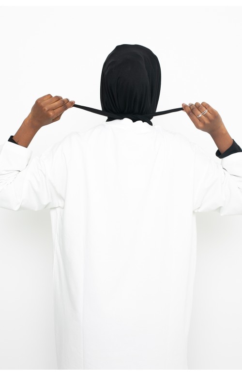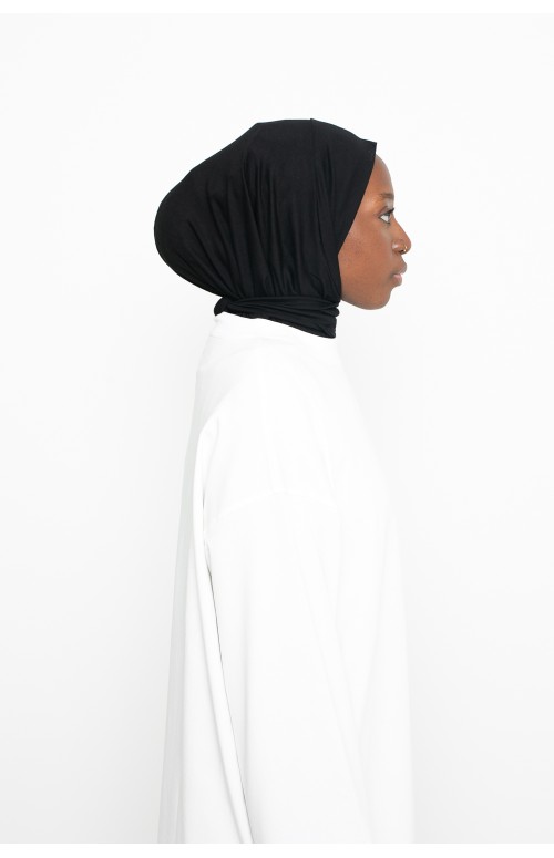 Hijab prêt à enfiler, il vous suffit de nouer les pans à l'arrière. Idéal pour votre quotidien mais aussi pour le sport.
