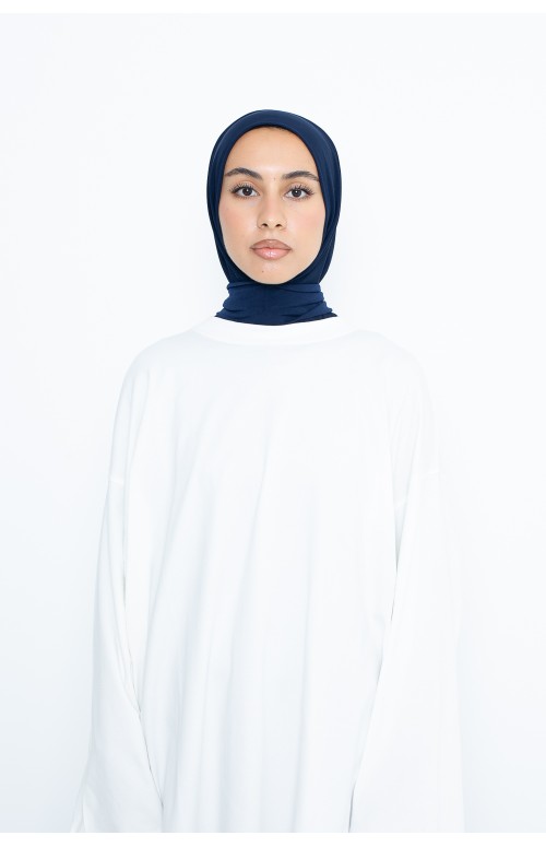 Hijab prêt à enfiler, il vous suffit de fermer les pressions à l'arrière. Idéal pour votre quotidien mais aussi pour le sport et même pour la piscine car le tissu sèche très rapidement.