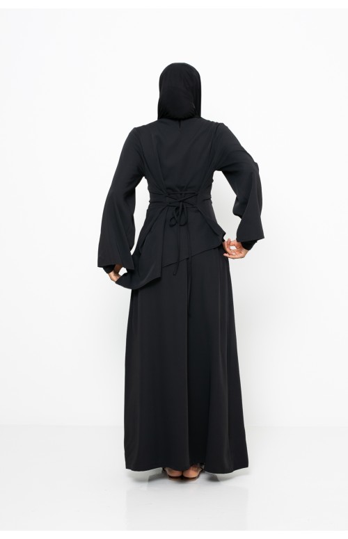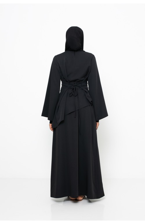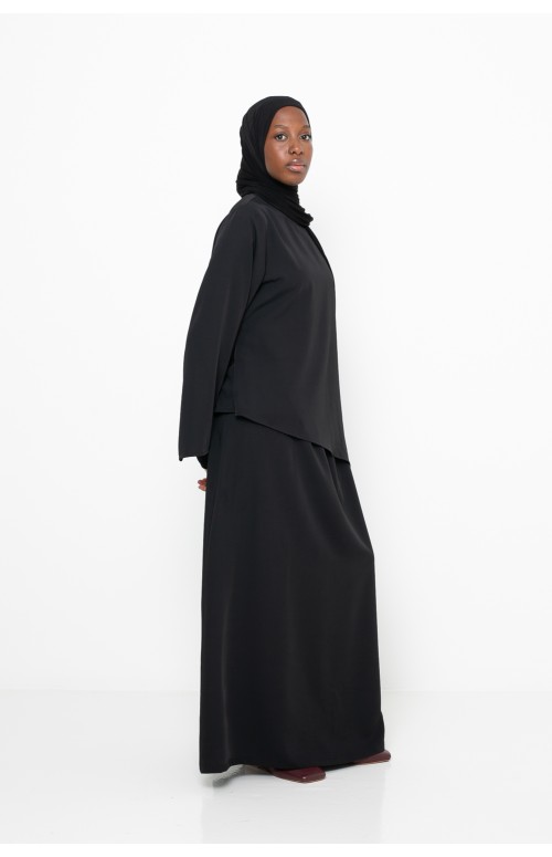 Nous l’avons associé avec notre hijab jersey premium noir, qui met en valeur la fluidité et l’élégance de l’ensemble. Nous l'avons également accompagner de chaussures élégantes noir pour un style automnale.