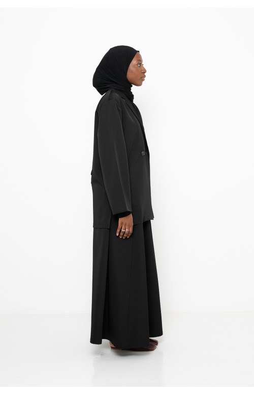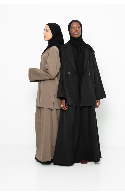 Découvrez un ensemble tailleur premium, conçu dans un tissu fluide et de très haute qualité, soigneusement sélectionné pour offrir élégance, confort et durabilité. Cet ensemble deux pièces se compose d’une veste blazer sophistiquée et d’une jupe trapèze large et fluide, créant une silhouette chic, moderne et intemporelle.