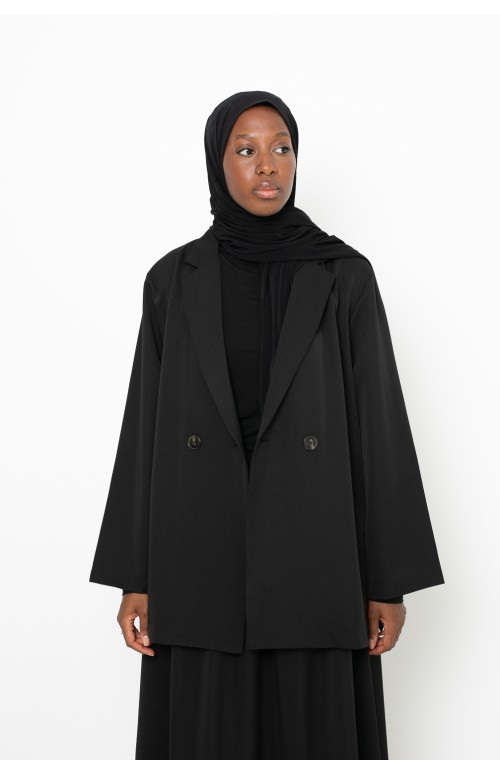 Nous l’avons porté avec le hijab jersey premium noir et une paire de chaussure bordeaux.