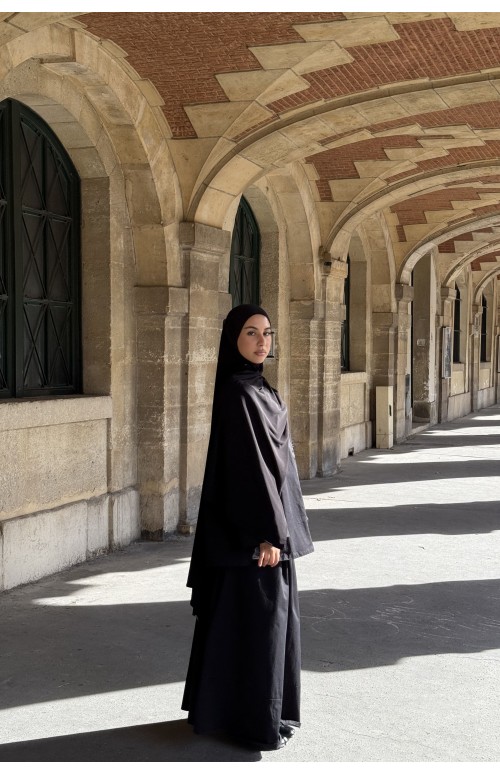 Pour un style harmonieux, nous l'avons associé à la chemise coton noir, le hijab jersey premium taupe ainsi qu'une paire de chaussure noir.