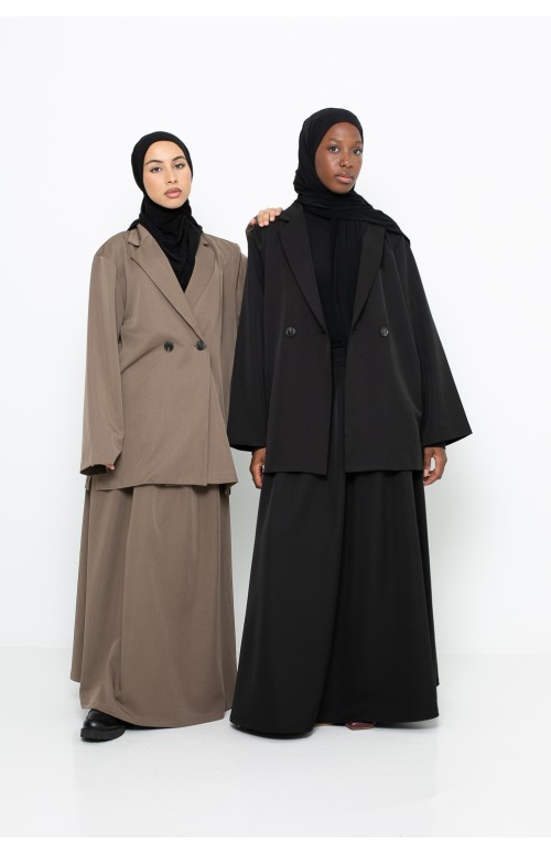 Découvrez une jupe premium fluide et élégante, confectionnée dans le même tissu de haute qualité que l’ensemble blazer. Sa coupe trapèze et son tombé raffiné en font une pièce à la fois moderne, chic et intemporelle, pensée pour accompagner vos tenues en toutes occasions.