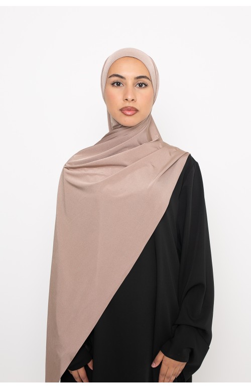 Le hijab en jersey satin fluide, à la fois doux, légèrement brillant et élégant, est le choix idéal pour sublimer vos tenues lors des occasions, mariages et fêtes, tout en conservant une simplicité raffinée.