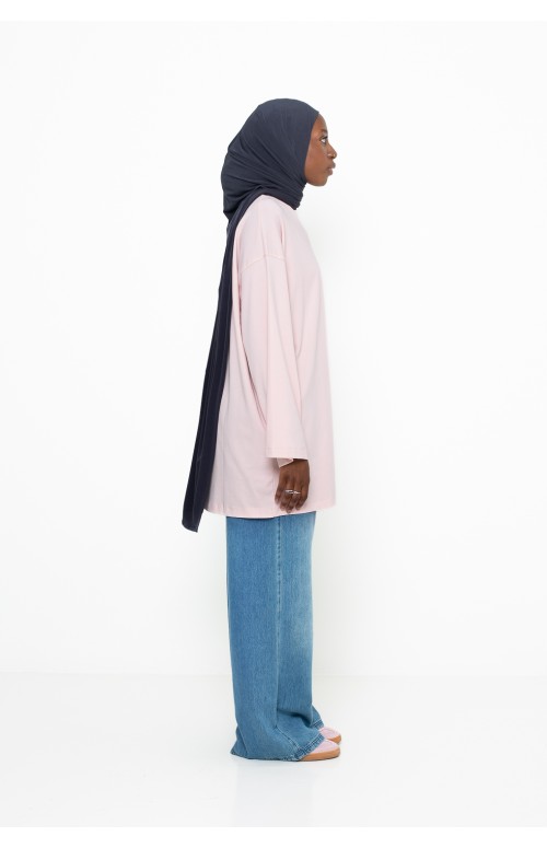La grande tendance du moment c'est le oversize et tant mieux car c'est ce que recherche la femme modeste. La marque CM vous propose ce magnifique t-shirt oversize pour femme. Un incontournable du dressing de la femme musulmane pour son quotidiens. Coupe oversize, manches longue larges, col rond haut et broderie Salam sur la manche gauche. Le tissu, de haute qualité est fabriqué en Turquie. La marque Salam a choisit pour vous les meilleurs tissu en terme de confort et de résistance. Le coton est connu pour ses propriétés absorbantes ce qui est idéal pour vos activités sportives mais également lors des saisons chaudes. Vous pourrez porter ce maxi t-shirt toute l'année.