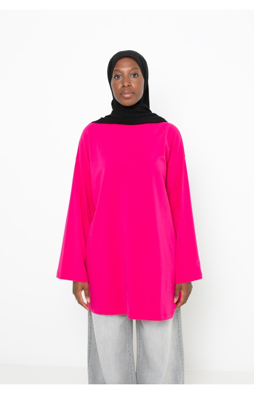 La grande tendance du moment c'est le oversize et tant mieux car c'est ce que recherche la femme modeste. La marque CM vous propose ce magnifique t-shirt oversize pour femme. Un incontournable du dressing de la femme musulmane pour son quotidiens. Coupe oversize, manches longue larges, col rond haut et broderie Salam sur la manche gauche. Le tissu, de haute qualité est fabriqué en Turquie. La marque Salam a choisit pour vous les meilleurs tissu en terme de confort et de résistance. Le coton est connu pour ses propriétés absorbantes ce qui est idéal pour vos activités sportives mais également lors des saisons chaudes. Vous pourrez porter ce maxi t-shirt toute l'année.
